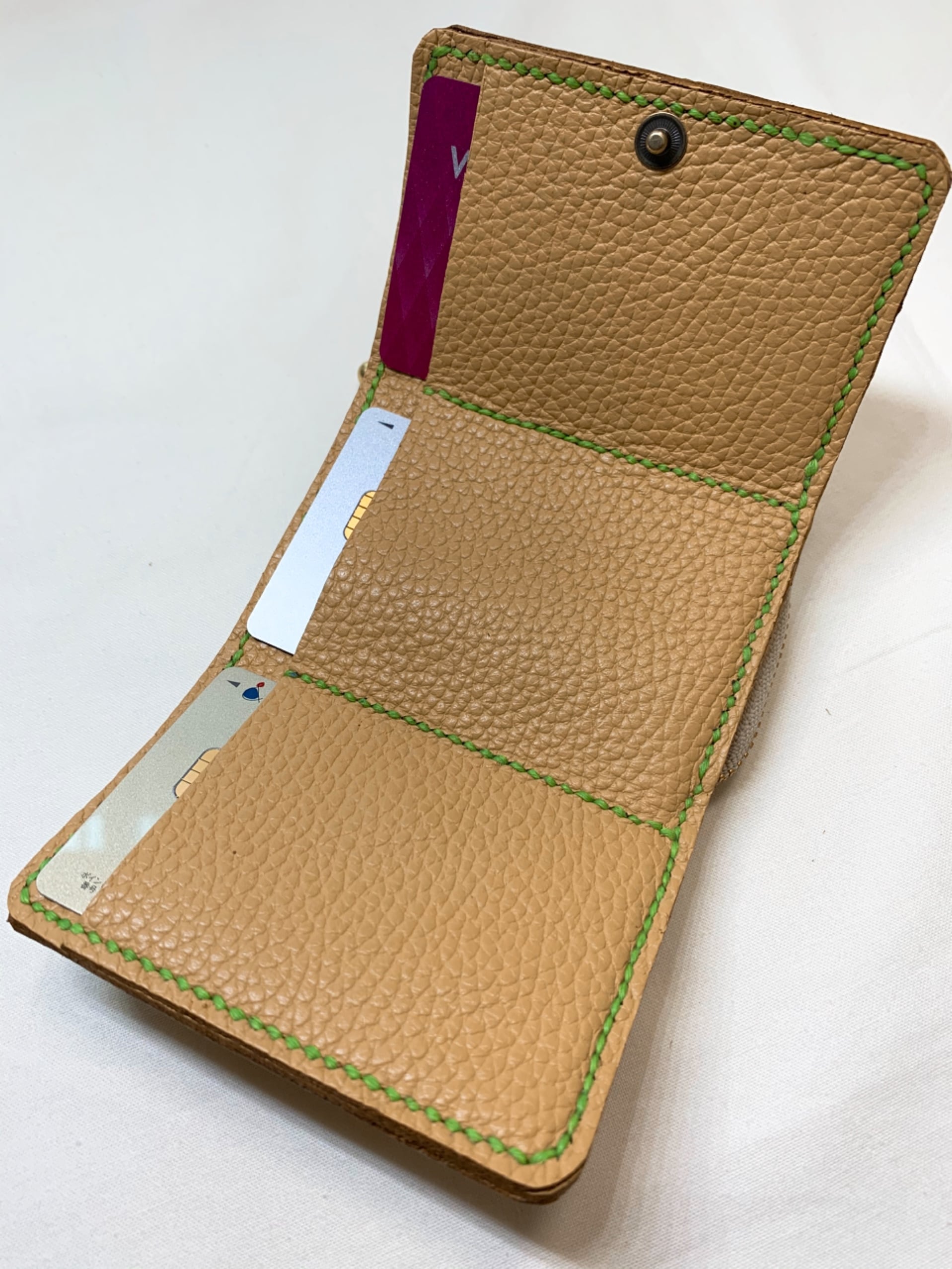 内側にカードが収納できるようにポケットを3個、外側にコインケースをお付けしました。